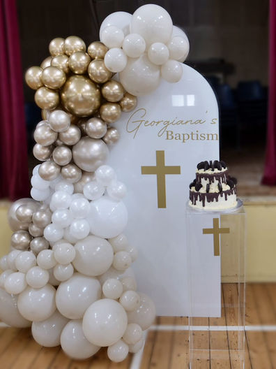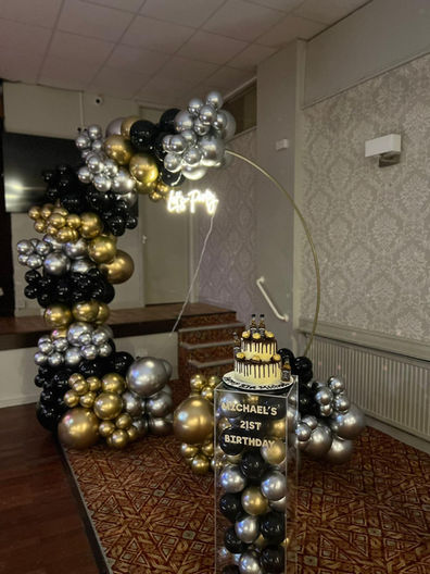 - Flower wall, sequin wall or sailboard arch backdrop decorated with a 10ft balloon garland or a 6ft/8ft balloon hoop